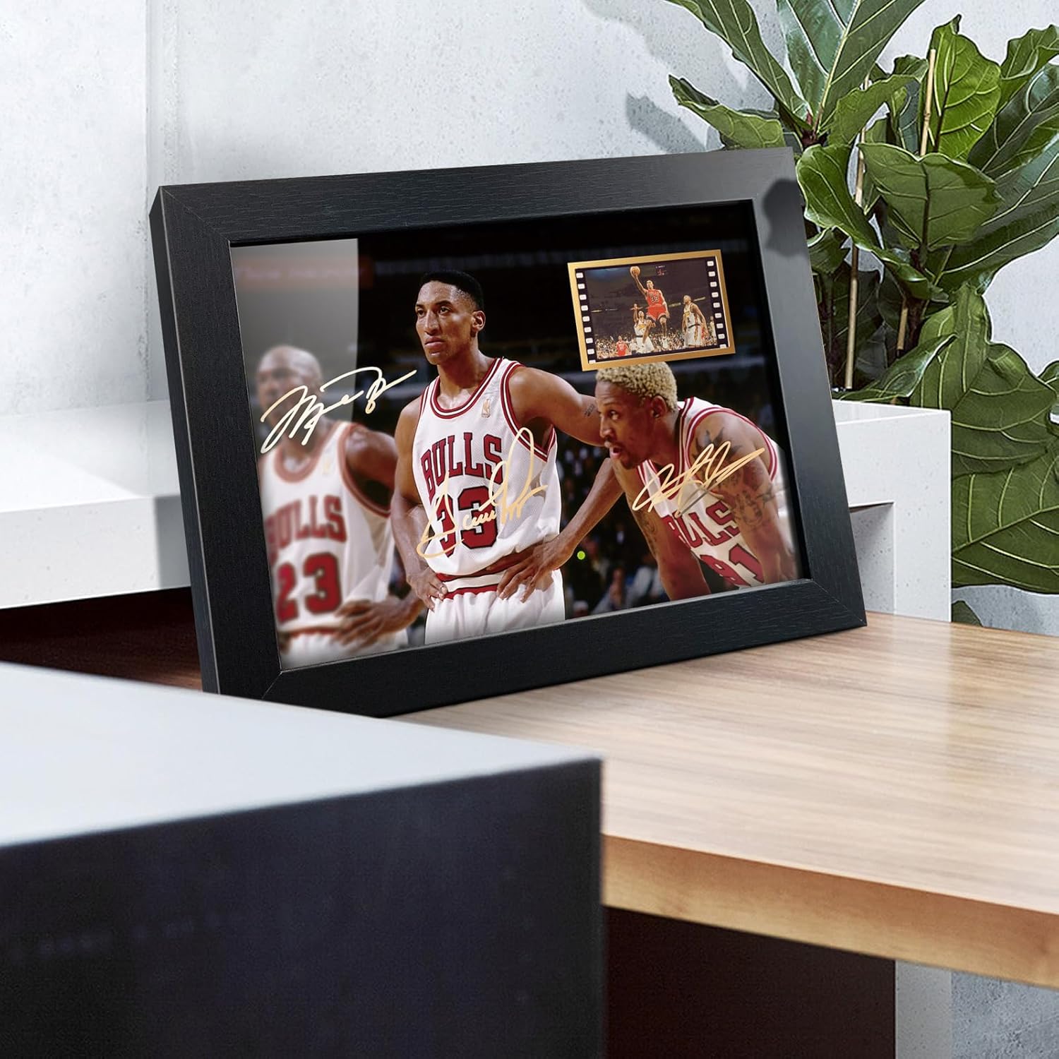 FRAMED DESIGN: The Scottie Pippen photo frame made of high-quality plastic is overall beautiful and elegant texture,with an internal size of 8×6 inches and an external size of 9×7 inches;It uses a HD PMMA transparent panel to make the image display clearer;The high-density moisture-proof wooden backboard bracket is more stable and durable;Desktop support